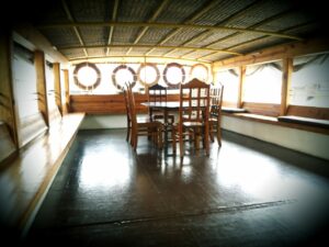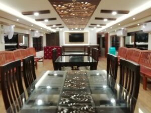 - Fully furnished living cum dining area that provides a panoramic view of backwaters
